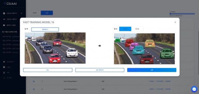 ▲ CLICK AI 솔루션을 통해 자동으로 생성된 딥러닝 기반의 물체인식 인공지능이 예측한 자동차 이미지