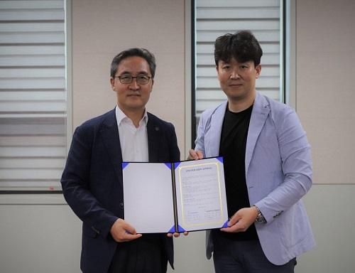 ▲ 한국폴리텍 대학 최무영 단장(왼쪽)과 유니버설로봇 코리아 이내형 대표
