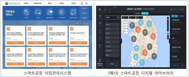 중소벤처기업부는 중소기업의 ‘스마트공장 신규 구축 및 고도화 지원, 대중소 상생형 스마트공장 지원, 데이터 기반 스마트공장 구축 지원’ 등 다양한 유형의 스마트공장 구축을 지원하고 있으며 효율적인 지원과 관리를 위해 스마트공장 사업관리시스템을 운영해 오고 있다.