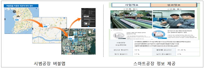 이를 통해 스마트공장 소개와 스마트공장 구축 사례, 스마트공장 현황 및 성과 등의 정보를 쉽게 찾을 수 있는 시각적인 버블맵 기반의 스마트공장 종합정보 제공 서비스를 하게 된다.