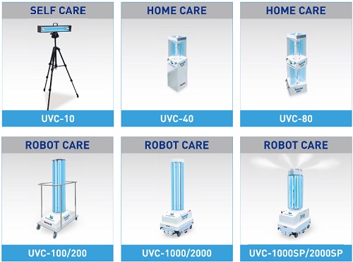 UVC-1000/2000과 UVC-1000SP/2000SP는 저속주행살균이 가능하며, 웹 기반의 사용자 인터페이스로 공간 맵핑과 옵션 편집이 가능해 넓은 공간도 무인 방역 가능하다. 병원, 복지 시설, 호텔, 전시회장 등 다중이용시설에서 작업이 가능해 활용이 기대된다.