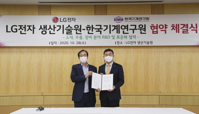 한국기계연구원과 LG전자생산기술원이 국내 제조장비 산업 경쟁력의 핵심인 장비기술 분야 발전을 위해 손을 잡았다.