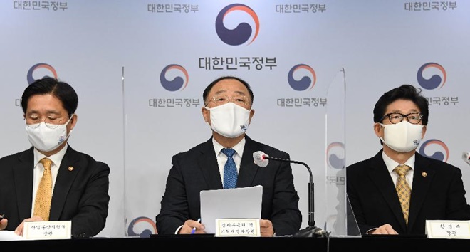 ▲홍남기 부총리 겸 기획재정부 장관이 12월 7일 서울 광화문 정부서울청사에서 열린 '2050 탄소중립 추진전략' 관련 합동브리핑에서 발언하고 있다. (출처 : 기획재정부)