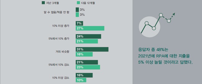 ■ COVID-19 대유행과 다가오는 경기 침체로 로봇 프로세스 자동화(RPA) 기술에 대한 지출이 어떻게 바뀌었습니까? 향후 12개월 동안 어떤 변화가 있을 것으로 예상하십니까?