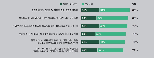 본 설문조사는 전 세계 글로벌 기업의 경영진 및 고위 관리자 약 160명을 대상으로 실시됐다. 이하는 설문조사 내용을 도표로 정리한 것이다.