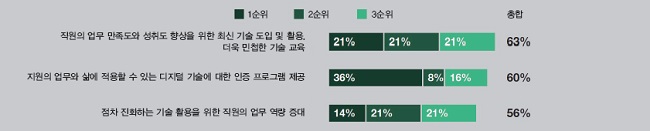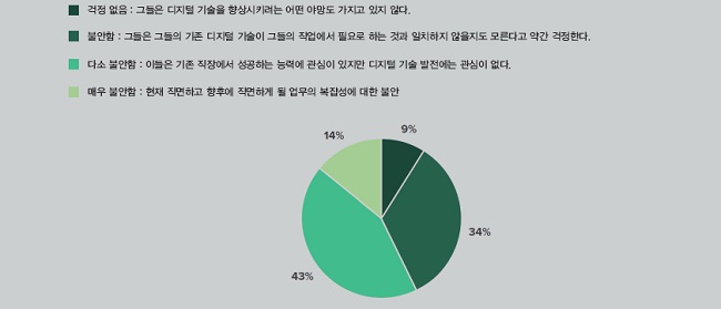 ■ 코로나19 대유행과 다가오는 경기침체 동안 요구되는 디지털 기술과 관련된 직원들의 태도를 가장 잘 보여주는 것은 무엇입니까?