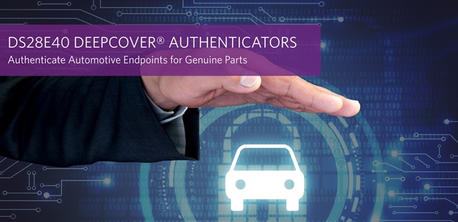 고정 기능의 1-와이어(1-wire) 솔루션 DS28E40 딥커버 인증장치는 AEC-Q100 표준 1등급 성능 기준을 충족하며 마이크로컨트롤러 기반 방식을 대체한다.
