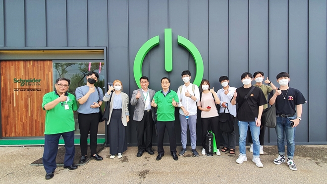 ▲슈나이더 일렉트릭 익산 스마트팩토리에 방문한 유니버시티 앰버서더 2기 학생들