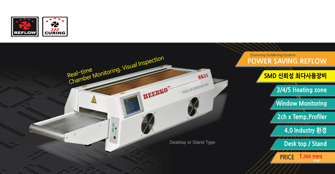 이 시스템에 포함된 장비는 에코 프렌들리 장비로 작동 전류는 3.5A다. 소형 리플로우에서 N2 지원도 가능하다. 장비의 온도 오차 값은 ±1℃다.