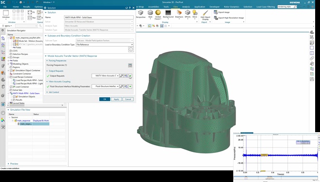 또한 Simcenter 3D의 새로운 기능인 청각화(auralization) 후처리 도구를 사용하면, 사용자는 시뮬레이션 된 음압 결과 값을 소리로 변환하여 음질을 평가할 수 있다.