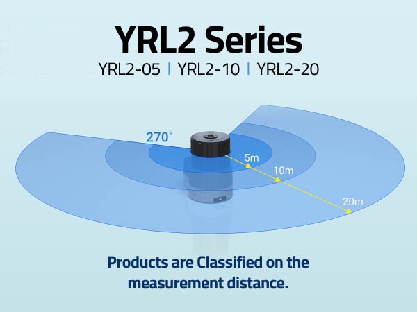 ▲유진로봇 2D 스캐닝 라이다 센서 YRL2 시리즈는 270도 수평 스캔으로 5m, 10m, 20m 까지 측정 가능한 제품 라인업을 가지고 있다. (출처 : 유진로봇)