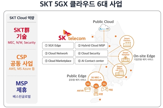 SKT는 세계적인 수준의 MEC · 네트워크 기술을 바탕으로 글로벌 클라우드 서비스 사업자인 아마존웹서비스(AWS) 및 MS와 협업을 진행하고 있다.