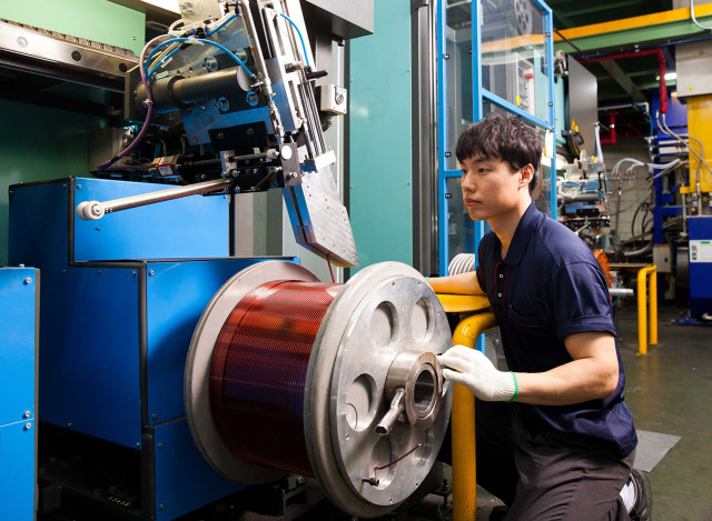사진. LS전선 직원이 경북 구미 사업장에서 전기차용 고전압 권선을 생산하고 있다.