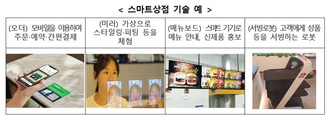 중기부는 소비·유통 환경이 빠르게 디지털화함에 따라 소상공인 점포도 온라인·디지털 기술 적용 필요성이 높아지고 있는 상황에 맞춰 ‘20년부터 소상공인에 스마트오더, 키오스크, 스마트 미러 등 기술 보급을 지원하는 '스마트상점 기술보급' 사업을 추진하고 있다.