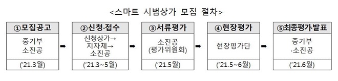 중소벤처기업부(이하 중기부)는 3월 30일부터 5월 17일까지 소상공인 사업장에 스마트기술 도입을 지원하기 위한 '스마트 상점 시범상가'에 참여를 희망하는 상가의 신청을 받는다고 밝혔다.