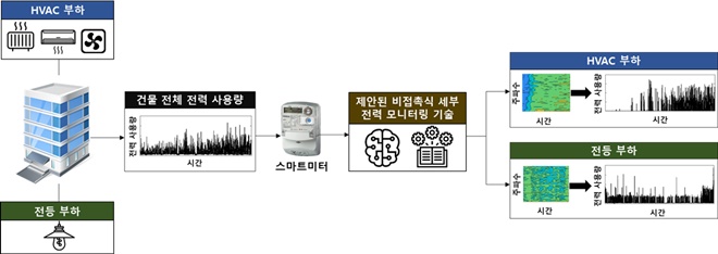 비접촉식 세부 전력 사용량 모니터링 기술은 스마트 미터에서 측정되는 전력 총량으로부터 특징적인 하위 부하들의 전력 사용량을 추정하는 비접촉식 형태의 전력 식별 및 분리 기술이다. 스마트 그리드에서 전력 수요 반응 제어 및 관리를 수행하는 기술 분야에 활용 가능하다.