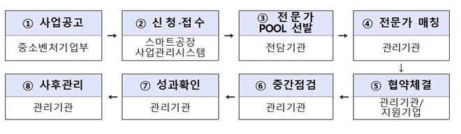 ▲사업 지원 절차(출처 : 스마트공장 사업관리시스템)