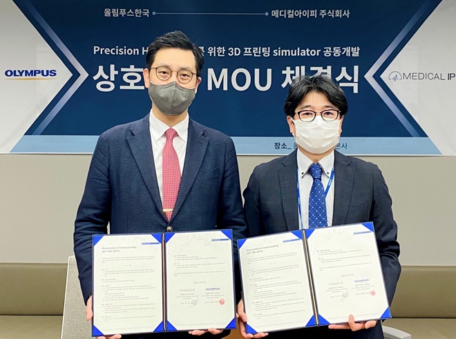 메디컬아이피㈜가 올림푸스한국과 'Precision Healthcare를 위한 3D프린팅 시뮬레이터 공동 개발' MOU를 체결했다고 밝혔다.