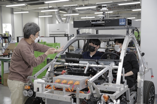 ▲UNIST 기계공학과 권철현 교수팀. UNIST와 울산대학교는 미래형 모빌리티 등을 주제로 산업현장의 문제를 해결하는 교육에 나선다. (출처 : UNIST)