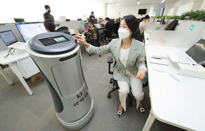 KT(대표이사 구현모)는 최근 KT 광화문 이스트(East) 사옥에서 근무하고 있는 사내 임직원을 대상으로 ‘AI로봇 우편배송 서비스’를 시작했다고 밝혔다.