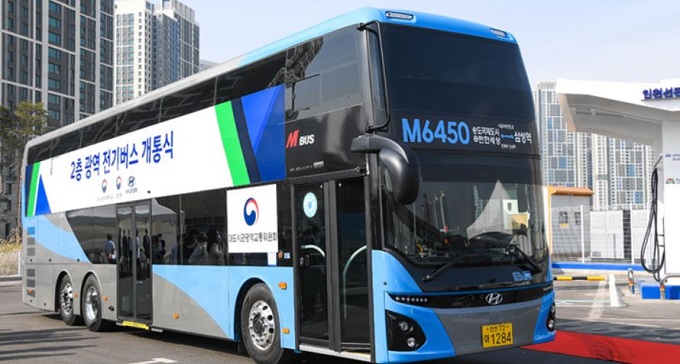 국내 최초의 이층 전기버스가 광역 노선을 누빈다.