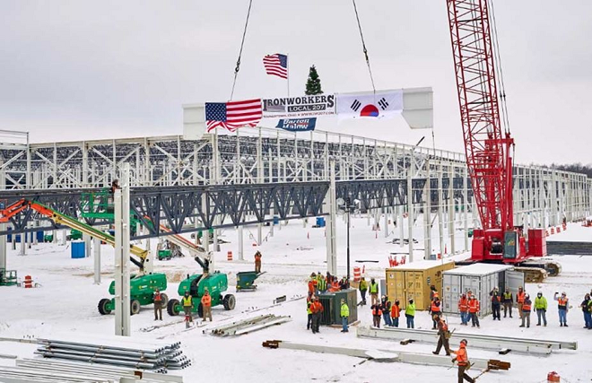 ▲얼티엄셀즈가 미 오하이오에 건설 중인 전기차 배터리 합작공장. (출처 : LG에너지솔루션)
