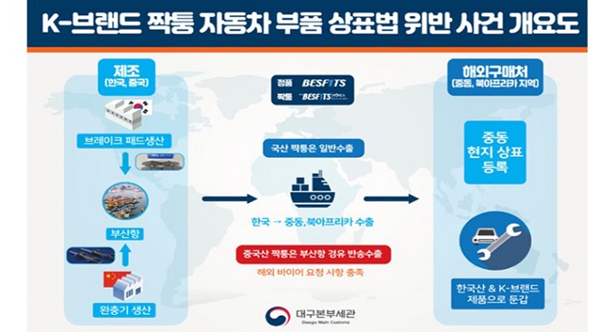 이들은 중동과 북아프리카 지역에서 국산차가 인기를 끌고, 현지 바이어들이 한국으로부터 직수입된 부품을 선호한다는 점을 악용했다. 국내 대표적인 자동차부품 업체인 현대모비스의 상표를 불법 도용해 김천에서 브레이크패드를 직접 제조한 뒤, 부산항을 통해 수출해 온 것이다.