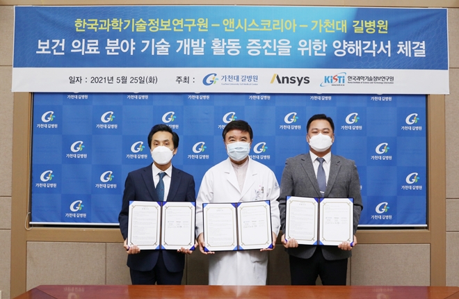 앤시스코리아와 가천대 길병원, 한국과학기술정보연구원(KISTI)이 국내 보건 의료 분야 연구 및 기술 개발 활동 증진을 목적으로 ‘상호 협력을 위한 양해각서’를 체결했다고 지난 26일 밝혔다.