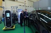 [첨단 헬로티] 국내외를 대표하는 전기차 대기업들과 충전기 제조사들이 한자리에 모두 모여 전기차 급속 충전시 발생하는 기술적 문제를 점검하고, 호환성 확보를 통해 국제표준 선도 기반을 마련하는 통합 테스티벌(Test+Festival)이 한국전기연구원(KERI, 원장 최규하) 안산분원에서 열린다. 10월 15일(월)부터 19일(금)까지 5일간, ‘전기차 DC 콤보 상호운용성 테스티벌’이란 이름으로 열리는 이번 행사는 전기차의 급속 충전 시 발생하는 각종 오류들을 수정하고, 완성차 및 충전기 제조사 간의 통일된 방식의 충전 호환성(상호운용성, interoperability) 확보를 통해 친환경 전기차의 상용화에 기여한다는 목적으로 마련됐다. ▲ 한국스마트그리드협회 정찬기 부회장(왼쪽)과 한국전기연구원 김맹현 시험부원장(오른쪽)이 '전기차 DC 콤보 상호운용성 테스티벌' 시험장에서 포즈를 취하고 있다. <사진 : 한국전기연구원 제공> 국가기술표준원(원장 허남용)이 주최하고, 한국전기연구원(이하 KERI)과 한국스마트그리드협회(협회장 구자균)가 공동으로 주관한다. 최근 주요 선진국들은 전기차의 핵심 사업인 급속 충전기 시장을 선점하기