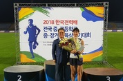 [첨단 헬로티] ‘2018 한국전력배 전국 중고등학교 중장거리 육상대회’가 9월 1일 나주 종합스포츠파크에서 열렸다. 전국 75개 학교에서 250명이 참가한 이번 대회는 중학교 800m, 3000m 고등학교 1500m, 5000m 등 남녀별 각 4개 종목이 진행됐다. ▲대회 MVP를 수상한 경북성남여중자중학교 박해진 선수(오른쪽)와 이호평 한전 관리본부장(왼쪽) 이번 대회에서는 작년 1월부터 올해 8월까지 베스트 기록인 기준기록을 3명의 선수가 갱신하는 성과를 이루었다. 특히 MVP를 수상한 경북성남여자중학교 박해진 선수는 800m 기록을 2분 13초 47로 들어와 해당 부문 최고기록을 수립했다. 이 기록은 실업팀 성적과 비교해도 5위 이내에 입상할 수 있는 기록이다. 대회를 주최한 한전은 참가선수 전원에게 훈련 용품을 제공하고 종목별 상위 입상자에게는 상금을 수여했다. 또, 경기력 향상과 사기진작을 유도하기 위해 우수 기록 수립 선수에게는 특별 포상금을 별도로 지급했다. 한전은 국내대회 최초로 선수가 개인별 신기록을 세우면 포상금을 지원하고 있고, 종목 신기록과 기준기록을 달성할 경우에도 단일종목 중고교 대 최초로 포상금을 지원한다.