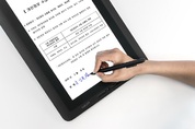 [첨단 헬로티] 와콤(Wacom)이 일반 종이와 잉크를 활용해 서명한 문서들을 디지털로 실시간 변환해주는 스마트패드 PTH-111 Wacom Clipboard(와콤 클립보드)를 발표했다. 와콤 클립보드는 서명 솔루션 제품군 중 하나로, 생체 인식 기반의 수기 서명도 캡처 및 파일로 첨부할 수 있는 기능을 포함한다. 디지털 문서들은 로컬 PC에 저장되며, 서버 및 클라우드 서비스에 즉시 업로드 돼 손쉽게 문서를 관리할 수 있다. 또한 이 제품은 현업에서 활용되는 종이 기반의 업무 환경을 바꾸지 않고 무서를 전자화해 쉽고 안전하게 저장할 수 있는 방법을 제공한다. 특히 기존의 종이 양식을 그대로 유지하되, 이를 디지털 방식으로 보관하기를 원하는 서비스, 의료, 보험 산업 및 공공분야 분야에 적합할 것으로 예상된다. ▲와콤 PTH-111 클립보드(Wacom Clipboard) 블루투스를 통해 호스트 PC 및 모바일 디바이스에 연결할 수 있으며 PC 환경에서는 USB를 통해서도 호환이 가능하다. 사용자가 이 제품에 문서를 올려놓으면 내장된 바코드 리더기가 자동적으로 문서를 인식하며, 이를 디지털 문서로 확인할 수 있도록 PC나 모바일 디바이스로 전송해준다. 사용자들
