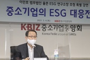 [헬로티] 중소기업중앙회는 중기중앙회 임직원을 대상으로 최근 대두되는 ESG(환경·사회·지배구조)에 대한 이해도 제고 및 대응전략 논의를 위해 ‘중소기업의 ESG 대응전략’을 주제로 특별강연을 개최했다고 밝혔다. ▲출처 : 중소기업중앙회 이 강연을 위해 법무법인 율촌 이민호 ESG 연구소장을 초청했다. 이 연구소장은 서울대학교 지질과학과 학사, 서울대학교 환경대학원 석사, 미국 인디애나대학교 행정·환경대학원 석사 및 델라웨어대학교 토목환경공학과 박사를 취득하고, 현재 법무법인 율촌에서 고문과 ESG연구소장직을 맡고 있다. 이날 강연에서 이 연구소장은 탄소중립, 국내외 ESG 정책 및 기업의 동향에 관해 설명하였으며, 강연 후에는 중기중앙회 임직원들과 자유토론 시간을 가졌다. 서승원 중기중앙회 상근부회장은 "경영 및 투자의사 결정 시 전통적으로는 재무제표를 고려했지만, 최근에는 사회, 환경 문제에 대한 기업의 해결 노력까지 반영하기 시작했다"며, "중기중앙회는 ESG로 인한 중소기업의 리스크를 최소화하고 기회는 확대할 수 있도록 방안을 모색하겠다"고 말했다.