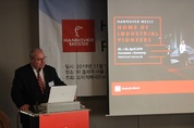 [첨단 헬로티] 대주제는 “통합 산업-산업 지능”…내년 4월1일 개최 인더스트리4.0, 인공지능, 적층제조, 코봇, 이 같은 용어들은 오늘날 산업계에서 자주 논의되고 있는 이슈다. 하노버산업박람회는 2019년 대주제를 “통합 산업-산업 지능(Integrated Industrial Intelligence)”으로 정하고 정보의 디지털화 다음 단계에서 인간과 기계가 어떻게 함께 협업해 나갈 것인가에 대한 통찰력을 제공한다. 참가사들은 2019년 4월 1일부터 5일까지 닷새간 디지털화가 제조업의 미래임을 보여줄 예정이다. ▲ 지난 14일 열린 기자간담회에서 주최측인 도이치메세의 마르코 지버트 대외협력 이사가 내년 하노버산업박람회에 대해서 설명하고 있다. 디지털화는 산업계 변혁을 주도한다 지난 11월 14일, 더 플라자 서울 호텔에서 개최된 2019 하노버산업박람회 기자간담회에서 행사의 주최측인 도이치메세의 마르코 지버트 대회협력 이사는 “세계화와 디지털화는 산업계의 변혁을 주도하고 있다”며, “하노버산업박람회는 이 두 가지 중요한 주제와 현재 업계가 직면하고 있는 과제에 대해 글