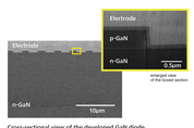파나소닉 코퍼레이션(Panasonic Corporation)이 일반 탄화규소(SiC) 다이오드에 비해 4배나 높은 고전류에서 작동이 가능한 것은 물론, 낮은 턴온(turn-on) 전압으로 저전압에서도 작동하는 질화 갈륨(GaN) 다이오드를 개발했다. 다이오드 신제품 생산의 열쇠는 최근 개발된 하이브리드 구조다. 이 구조는 고전압 조건에 대비해 저전압 유닛과 고전류 지원 유닛으로 이뤄진 별도의 임베디드 구조로 구성돼 있다. 기존 실리콘(Si) 다이오드는 변환 손실 경감과 관련해 제한이 따른다. 반면 차세대 유망 파워 반도체로 간주되는 물질인 SiC와 GaN에 기반한 다이오드는 고전류 작동을 구현하기 위해 보다 큰 칩 면적을 필요로 하며, 이로써 동작 주파수 증가가 야기돼 변환 손실과 사이즈 경감에 제약이 있다. 새로 제조된 GaN 다이오드는 고전류 작동과 낮은 임계 전압을 동시에 구현했으며 이로써 작은 칩 면적으로도 높은 전류를 처리할 수 있다. 이에 따라 칩의 정전용량을 줄여 낮은 변환 손실을 구현할 수 있으며 이에 힘입어 장치가 보다 높은 주파수에서 작동할 수 있도록 지원한다. 따라서 높은 전력을 요하는 자동차나 산업 장비의 전압 변환 회로 또는 인버터 회