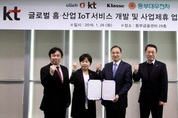 사진. KT와 동부대우전자가 글로벌 홈/산업 IoT 서비스 게발 및 사업제휴 업무협약식을 가졌다. <출처: KT> KT(회장 황창규)와 동부대우전자(부회장 최진균)는 최근 동부대우전자 본사 사옥에서 홈·산업 분야 IoT 상품 개발과 글로벌 시장 진출 및 공동 마케팅 등 상호 협력을 위한 양해각서(MOU)를 체결했다고 밝혔다. KT는 자체 개방형 IoT 플랫폼인 IoTMakers를 활용해 동부대우전자의 가전제품에 홈 IoT 연동을 위한 네트워크, 소프트웨어 개발 및 검증을 지원할 예정이다. 또한, 동부대우전자의 전 세계 생산공장 및 현지 법인과 지사 업무환경에 적용 가능한 산업용 IoT 솔루션을 발굴하여 공급할 계획이다. 동부대우전자는 전 세계에 40 여개 법인 및 지사를 보유하고 약 150개 국가에 제품을 공급하는 글로벌 가전회사로 이번 협약을 계기로 IoT 기반의 스마트 가전 제품에 적극 나설 계획이다. 향후 양사가 협력해 도출한 홈·산업 IoT 서비스들의 해외 시장 진출 등 글로벌 마케팅 분야에서도 긴밀한 협력관계를 지속할 예정이다. KT GiGA IoT 사업단장 송희경 전무는 “GiGA IoT Allianc