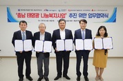 [첨단 헬로티] 한국서부발전(사장 김병숙, 이하 서부발전)은 지난 6월 14일 한국에너지공단 대전충남지역본부에서 충남지역 태양광 나눔 복지사업 추진을 위한 업무협약을 체결했다. 이날 업무협약에는 강동환 서부발전 국정과제추진실장을 비롯하여 중부발전, 동서발전 당진화력본부, 에너지공단 대전·충남지역본부,충남 사회복지공동모금회 관계자가 참석했다. 태양광 나눔 복지 사업은 정부의 재생에너지 3020 이행계획에 따른 에너지전환에 적극 부응하고, 신재생에너지공급인증서(REC) 판매에 따른 발전수익이 지역사회 사회복지시설의 재정자립에 기여하며, 관련 사업의 활성화 등 사회·경제적 공유가치를 창출하는데 목적이 있다. 제1호 태양광 나눔복지 사업은 지난 3월 1일 서울 성동구 서울시립동부노인전문요양센터에서 43KW 규모로 착공식을 가졌다. 이번 협약을 통해 서부발전을 비롯한 발전 3社는 충남지역의 사회복지시설에 태양광 설비 설치 소요비용을 기부하고, 에너지공단은 사회복지시설 입지조사, 계획수립 등 종합컨설팅을 하며, 사회복지공동모금회는 기부금 영수증 발급 등 기타 제반 업무 지원을 통해 태양광 나눔복지 사업을 상호 협력해 나갈 것으로 예상된다. 또한