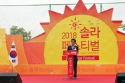 [첨단 헬로티] 국내 에너지 축제 ‘2018 솔라페스티벌’이 충청북도 진천군에서 개막했다. 이날 개막식에선 이시종 충청지사를 비롯하여 김현철 산업부 신재생에너지정책단장 등 주요 인사들이 대거 참가했다. ▲ 개회사하는 송기섭 진천군수 <사진 = 김동원 기자> 행사의 개회사를 맡은 송기섭 진천군수는 “행사가 열리는 진천군은 한화 큐셀 등 대규모 태양광 기업과 국내 최대 태양광 연구기관인 태양광기술시험센터를 포함한 다수한 연구기관이 입지해 있고, 전국 최초의 에너지 자급자족이 가능한 친환경 에너지타운과 태양광 모듈, 재활용 연구센터, 우석대학교와의 태양광 인더스트리 도입 등 전국 유일하게 생산·연구·소비·재활용·교육의 태양광 산업 자원순환 모델을 완비한 지역”이라고 소개했다. 이어 송 군수는 “올해 우리 군은 신재생에너지과를 수립하고, 태양광 3050 이행계획을 수립하여, 2030년까지 신재생에너지 발전 비중 50% 달성을 목표로 신재생에너지 확대 보급 정책에 앞장서고 있다”고 강조했다. ▲ 개회사하는 송기섭 진천군수 <사진 = 김동원