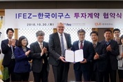 [첨단 헬로티] 한국이구스는 송도 지식정보 산업단지내 9498㎡ 규모 대지 신사옥 입주와 관련해, 인천경제자유구역청장과 독일 이구스 본사의 Artur Peplinski 부사장 공동주관으로 미화 1.3천만불 규모의 외국인 직접 투자 조인식을 개최했다고 밝혔다. 한국이구스는 창립 17년이 지난 현재, 임직원 수 20배, 매출 150배 이상의 규모로 성장했다. 이에 따라 국내 생산능력 확보를 위한 공장의 건립은 물론, 앞으로 우수 인력을 유치하고 육성하기 위해 송도 신사옥 이전을 결정했다. 한국이구스가 새롭게 둥지를 틀 송도 신사옥은 연면적 6941.97㎡로, 사무동 3층과 공장 2층 규모의 신축 건물이다. 이를 통해 국내 현지 생산이 가능해짐은 물론, R&D센터를 신축해 4차 산업혁명을 이끌 로봇 자동화 기술 및 스마트 플라스틱에 대한 연구를 강화한다는 계획이다. 우수한 인재를 유치하기 위한 편의 시설을 고려한 것도 특징이다. 한국이구스는 건물 내에 사내식당과 휴게실을 위치시켜 직원의 부담을 덜고 업무에 보다 집중할 수 있는 환경을 조성해 인천시의 인재를 적극 유치 할 계획이다. 한국이구스 김종언 대표는 “이번 사옥 이전을 통해 R&D센